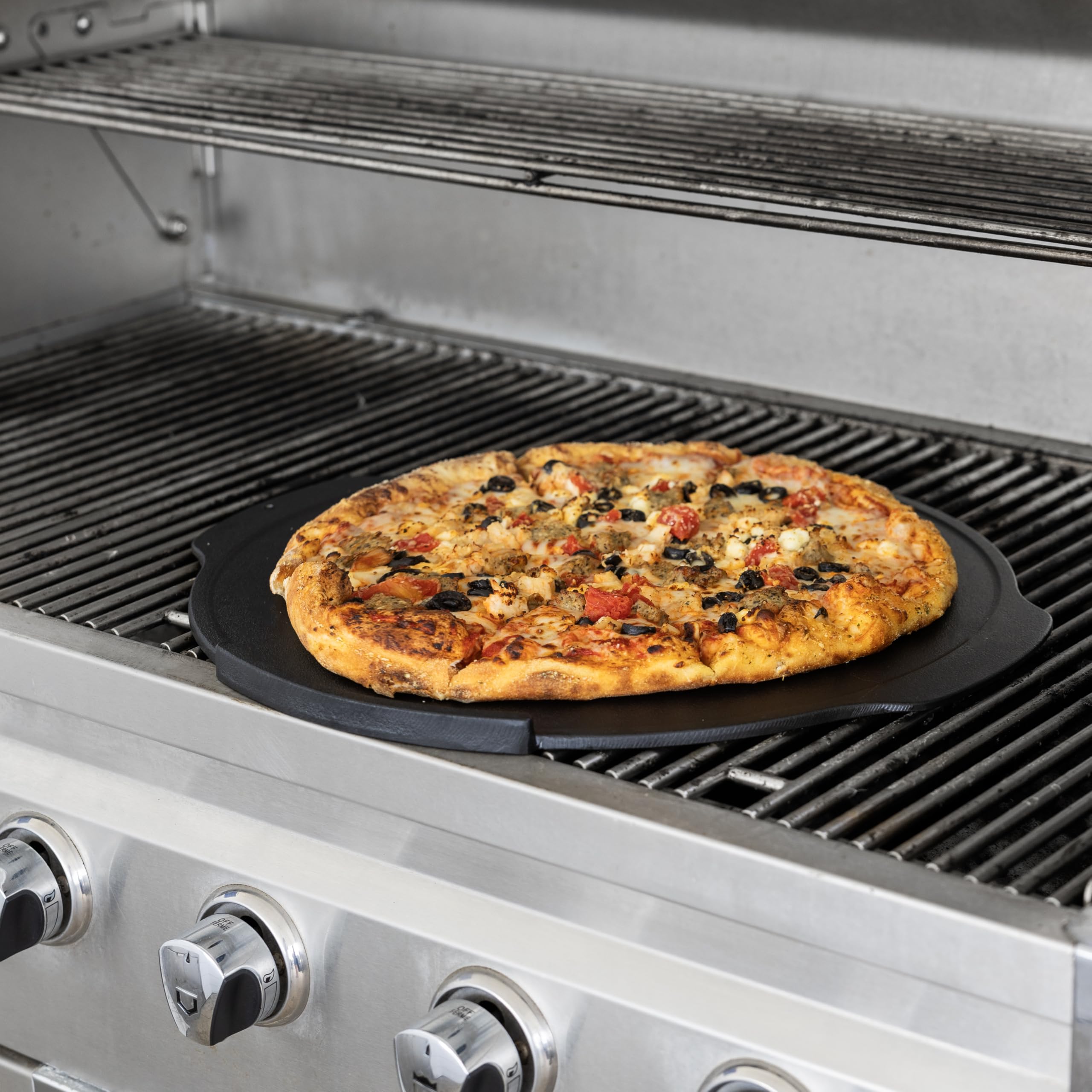 Outset Cast Iron Grill Pizza Pan, 18" Pizza Stone For Oven and Grill—