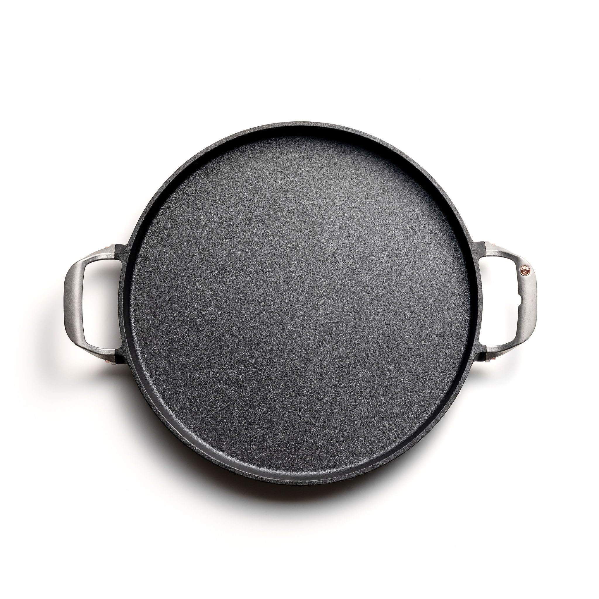 Outset Grill Paella and Deep Dish Pizza Pan, Cast Iron BBQ Pan with Handles, 18.15” x 14.11” x 1.25"