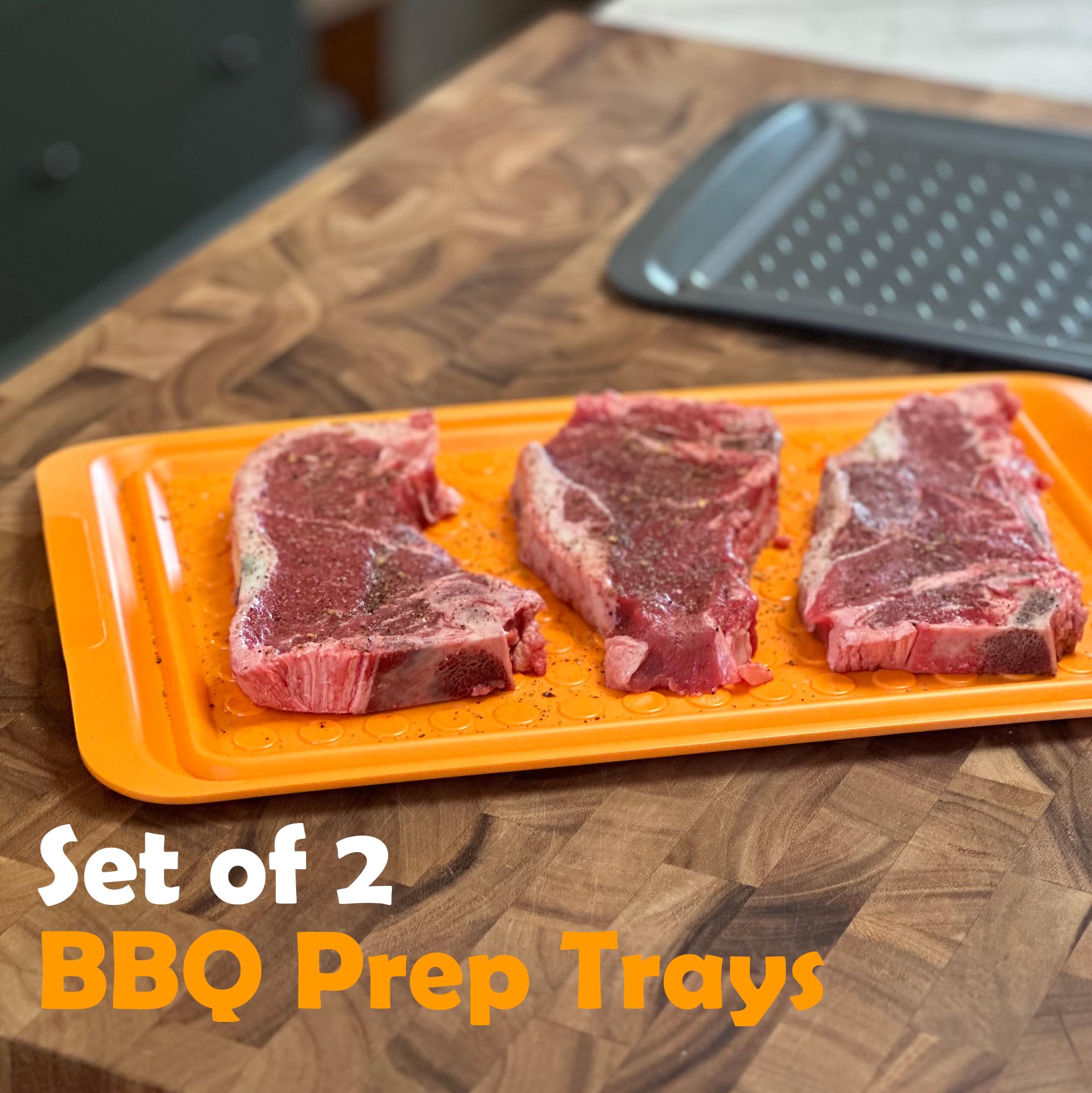 COLOR-CODED: Colored orange and black so you can safely keep raw and cooked meats separated. Perfect for prepping on one BBQ tray and serving on the other!