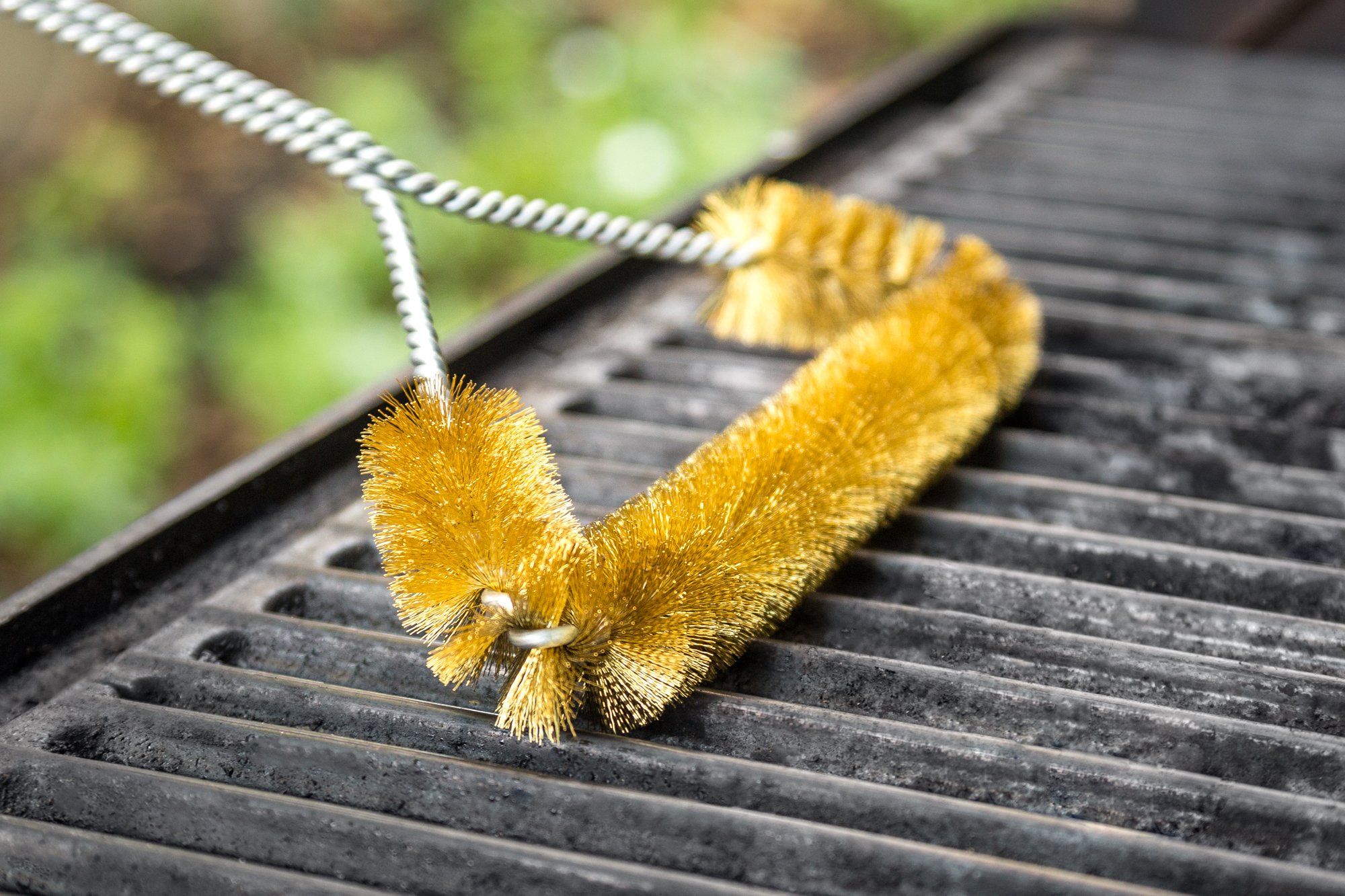 - Three-sided grill brush cleans between grill grates and tough to reach places